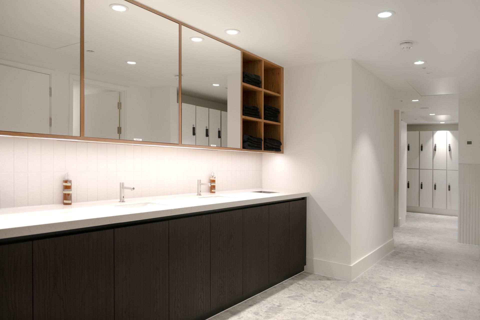 New lighting and lighting controls were installed throughout the end of journey facilities in the basement, new bike storage, locker rooms, toilets and showers rooms were created.