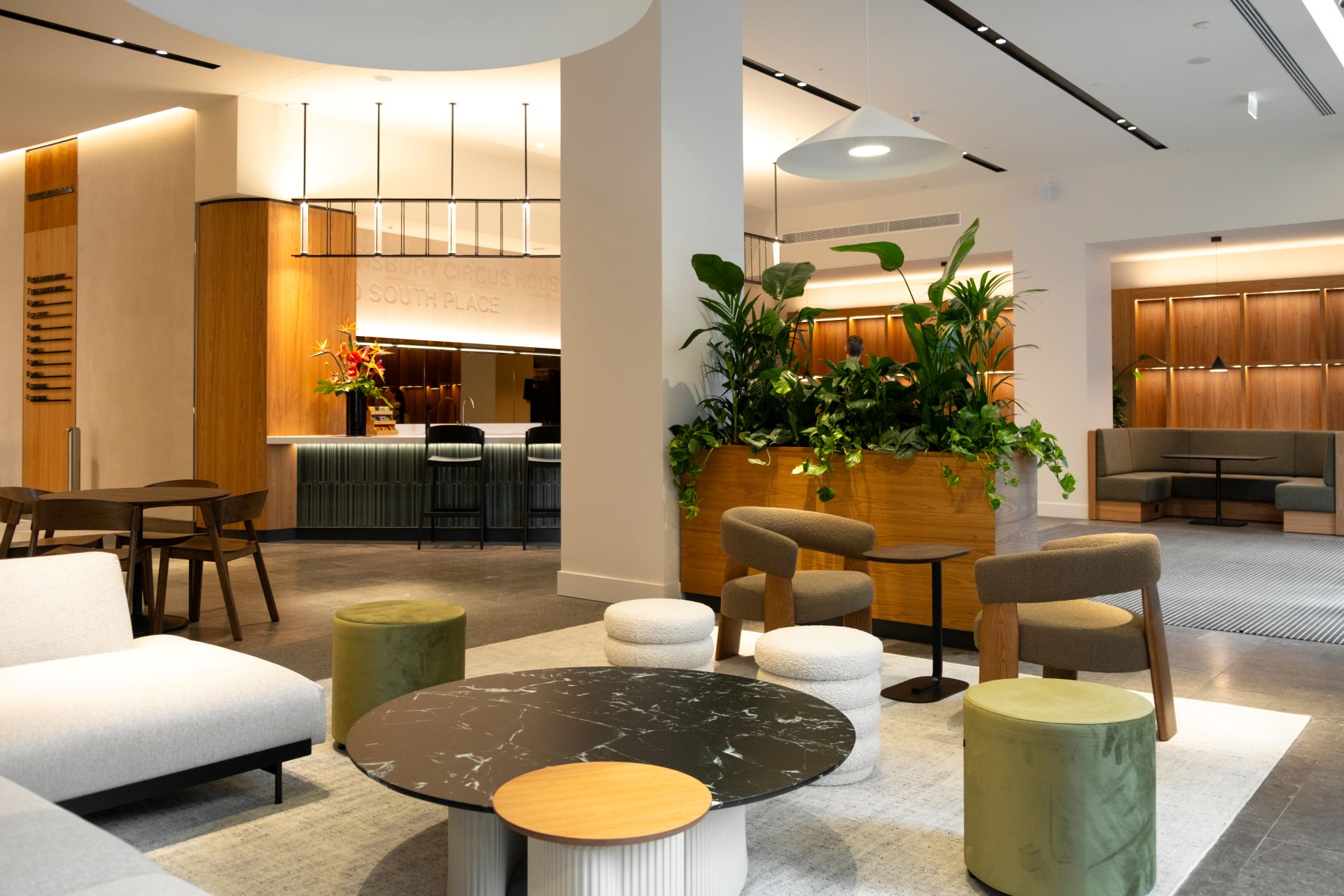 Description: Refurbishment of the reception at Finsbury Circus House, this included new general, feature and concealed lighting which combined gives a welcoming aura that creates a pleasant atmosphere for clients, suppliers, staff and visitors.
