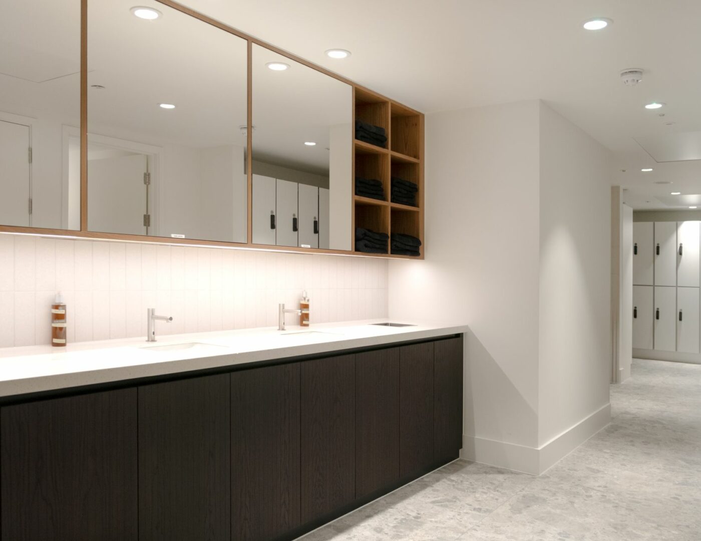 New lighting and lighting controls were installed throughout the end of journey facilities in the basement, new bike storage, locker rooms, toilets and showers rooms were created.
